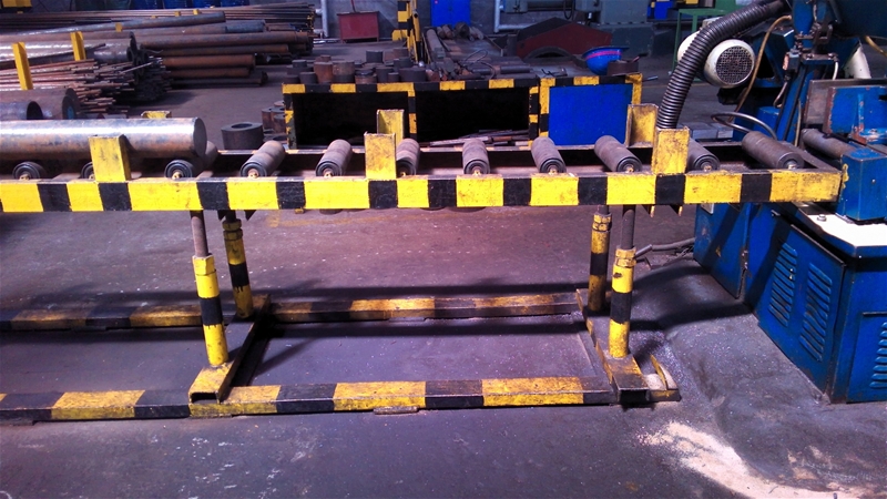 项目简介:我单位现有带锯床GB4032一台,随厂附件小车料架一个,因小车料架设计缺陷,与地面接触点较小有时在送料过程中导致小车倒塌,从而造成安全隐患。针对此安全隐患,利用废钢槽,回收的旧小托辊,并自制调整螺距,通过组焊,并在料架边设立挡板,试制成功,并投入使用。改进后,使用状况良好。原来锯床使用机床自带小车料架,吊装圆钢时,需要两人配合才能完成而且存在安全隐患。改进后吊装上下圆钢仅需1人便能完成操作。按每天锯床节省1人劳动力计算,每天每人8小时工时费为200元计算,每年可节约人工费1 太阳集团手机版,32万元。。