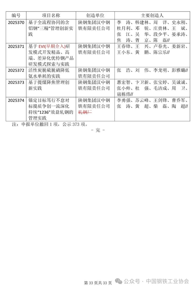 "太阳成集团官方版" 第二十二届(2025年)冶金企业管理现代化创新成果申报项目公示