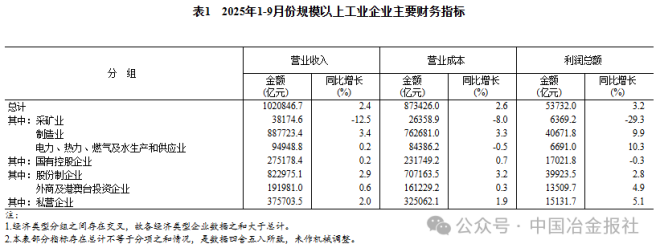 1-9月份,采矿业实现利润总额6369.2亿元,同比下降29.3%;制造业实现利润总额40671.8亿元,增长9.9%;电力、热力、燃气及水生产和供应业实现利润总额6691.0亿元,增长10.3%。