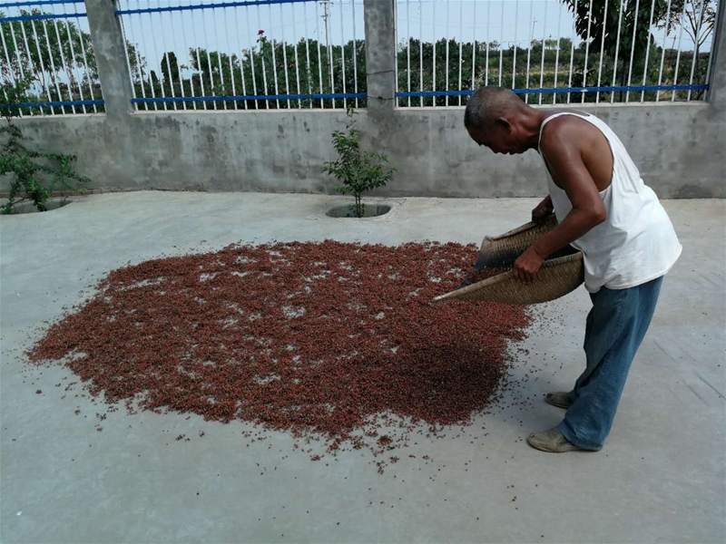 中午吃饭的时候,爷爷就不见了,只听见院子里“嚓嚓嚓”的声音,随即我来到院子里看见爷爷在收花椒,摸了摸花椒还没干就问爷爷:“爷爷,花椒还没晒干怎么就收了,”爷爷说道:“这晒花椒不能晒的太干了,太干了花椒就碎了,不好脱籽”说着爷爷已经将花椒扫成一堆,用木扒将花椒轻轻地拍打,使花椒籽从花椒上脱离出来 太阳集团平台,随后将大部分花椒用木扒扒出来晾晒,剩下的花椒和籽混在一起不好分离,这时候爷爷就用簸箕将花椒和籽用他的多年技术给分离出来,看着爷爷干的好不热闹我也试着干了一会,发现花椒粒没有从花椒籽里分出来,它们还是混在一起,看来这个活还得慢慢积累经验。