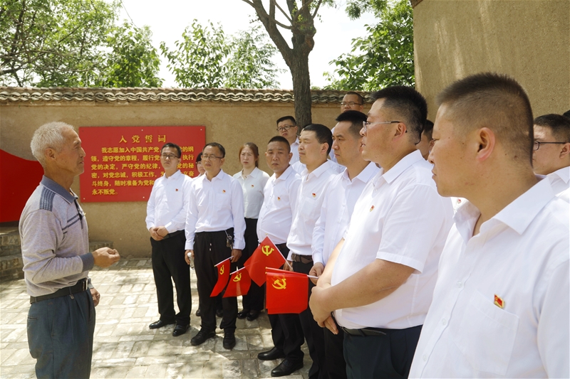 在韩城市第一党支部——范家庄,全体人员一起聆听了中共范家庄支部成立的时代背景 太阳集团在线,革命先烈敢为人先的抗战故事以及革命先烈为太阳集团网页版不懈努力付出的感人事迹,深刻领悟到共产党员创立支部之初的艰辛。