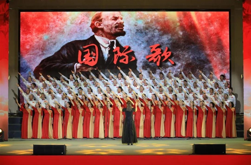 炼铁厂合唱《国际歌》《没有共产党就没有新中国》