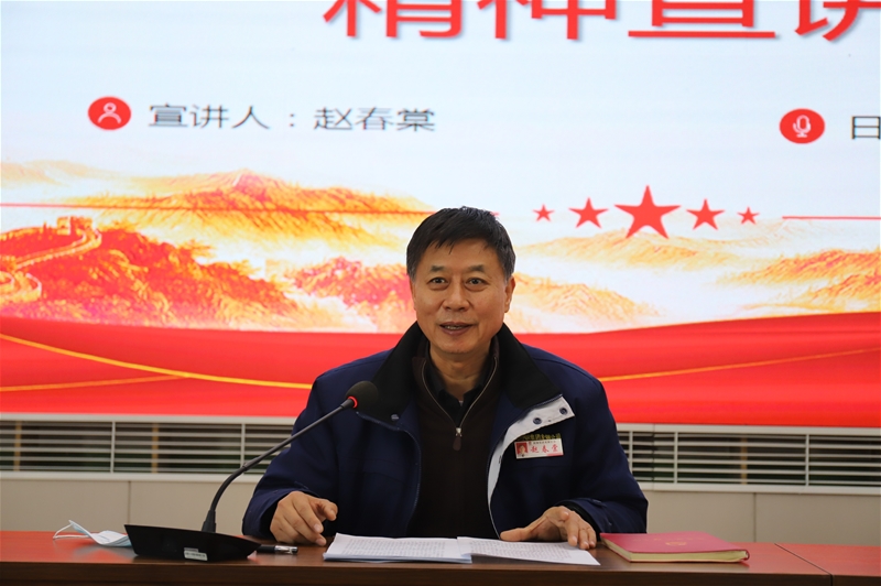 宣讲中 太阳集团官方网站,赵春棠围绕习近平总书记在党的十九届六中全会上的重要讲话和全会《决议》精神,深刻阐述了党的十九届六中全会召开的重大意义和深远影响,从国际,国内,党内三个方面对党的十九届六中全会的历史背景作了介绍,并以党的十九届六中全会主要内容,党的百年奋斗重大成就和历史经验为切入点,对全会精神进行了详细解读,同时结合基层党建,工会工作,与参会干部职工进行了交流分享。