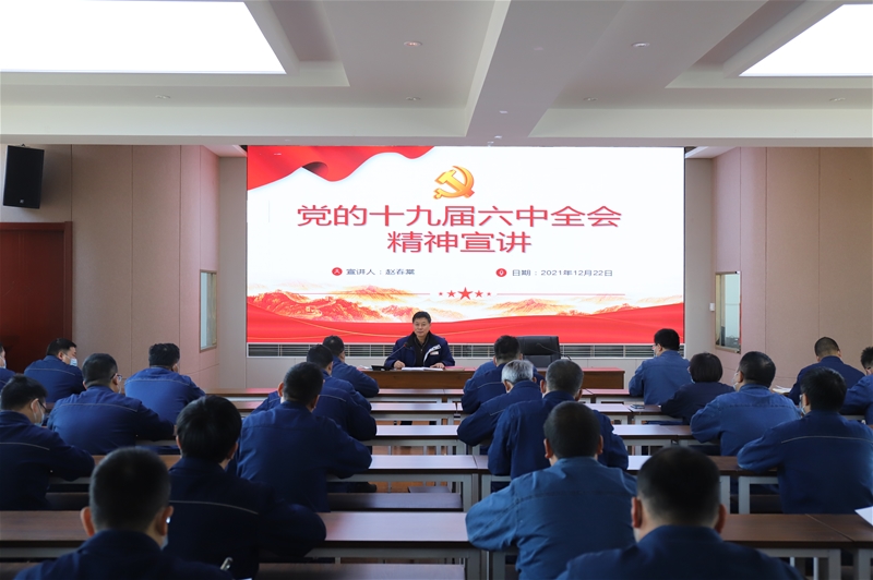 12月22日,公司党委委员 太阳集团下载,工会主席赵春棠到其党建包联点能源检计量中心宣讲党的十九届六中全会精神,该单位班子成员,基层干部职工代表参加。