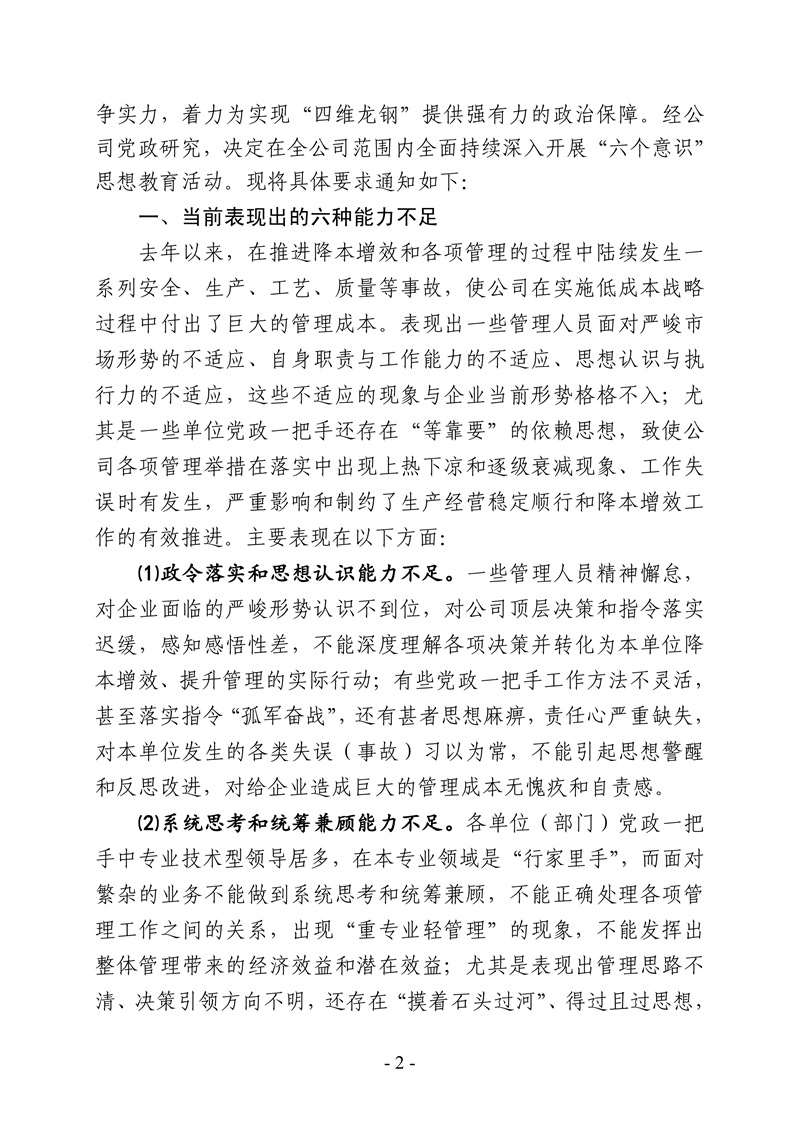 中共太阳成集团tyc33455委员会 关于深入开展“六个意识”思想教育活动的通知