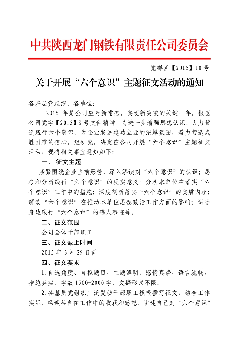 "太阳集团注册" 关于开展“六个意识”主题征文活动的通知